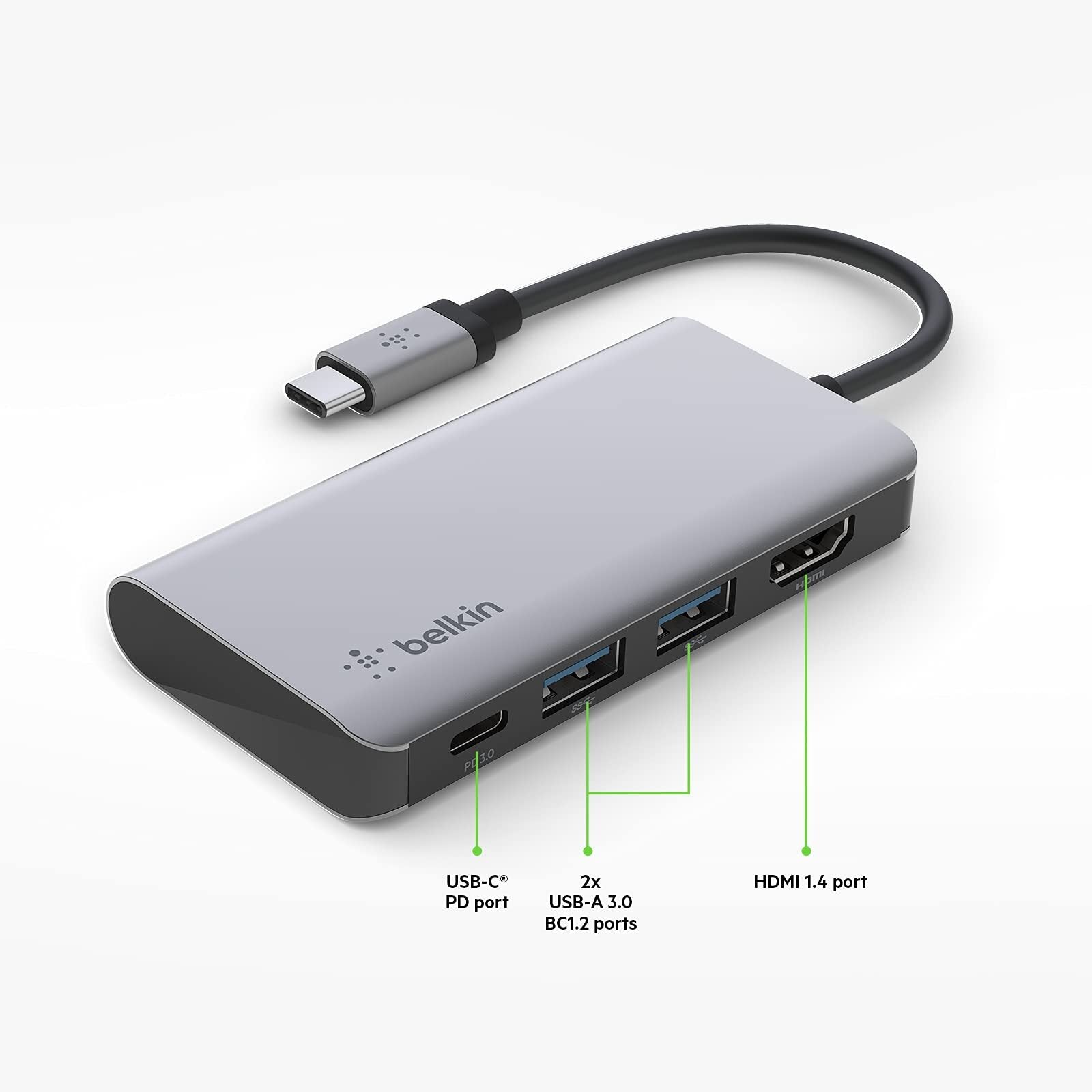 Belkin USB C Hub, 4-in-1 Multi-Port Laptop Dock with 4K HDMI, USB C Docking Stat