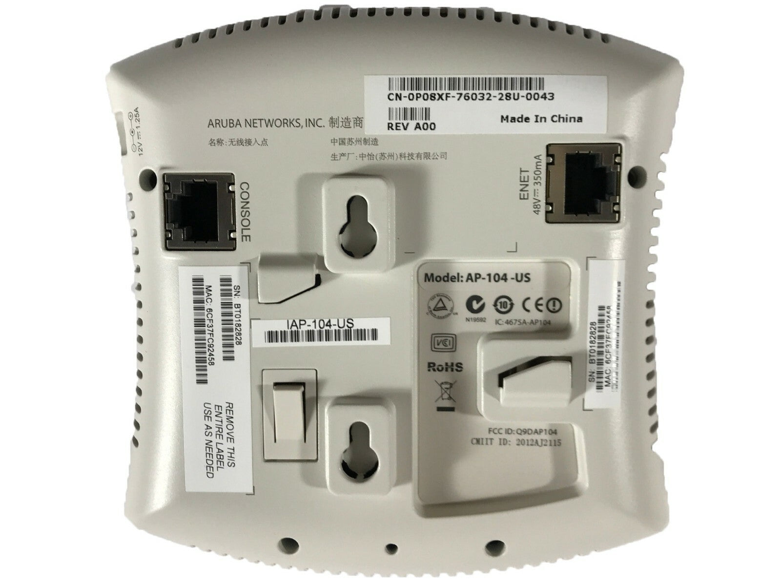 Dell ARUBA Power Connect W-IAP 104 APT-104-US Instant Access Point 0P08XF P08XF