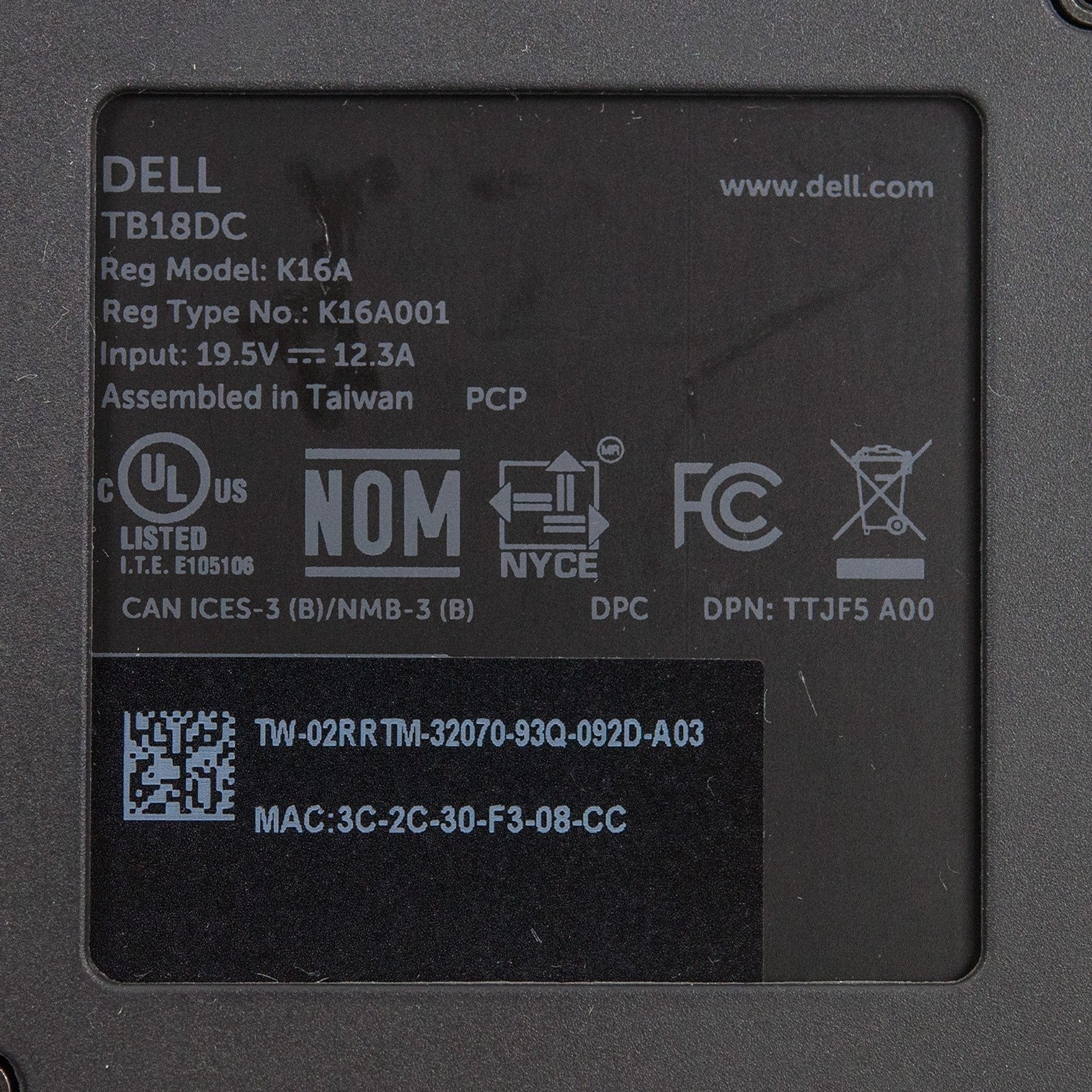 Dell Precision K16A Dual Thunderbolt 3 USB-C Docking Station 2RRTM TB18DC w/ AC