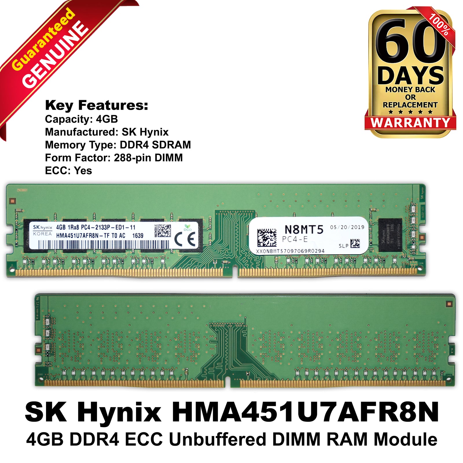 Dell SK Hynix HMA451U7AFR8N-TF 4GB DDR4-2133 ECC UDIMM PC4-17000P Server RAM (NOT FOR HOME PC)