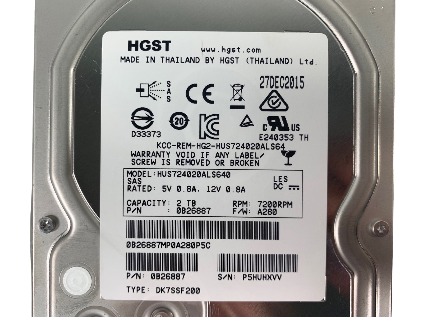 Genuine HGST HUS724020ALS640 2TB 7200RPM 6Gbps SAS 3.5" HDD 0B26923 0B26887 (NOT FOR HOME PC)