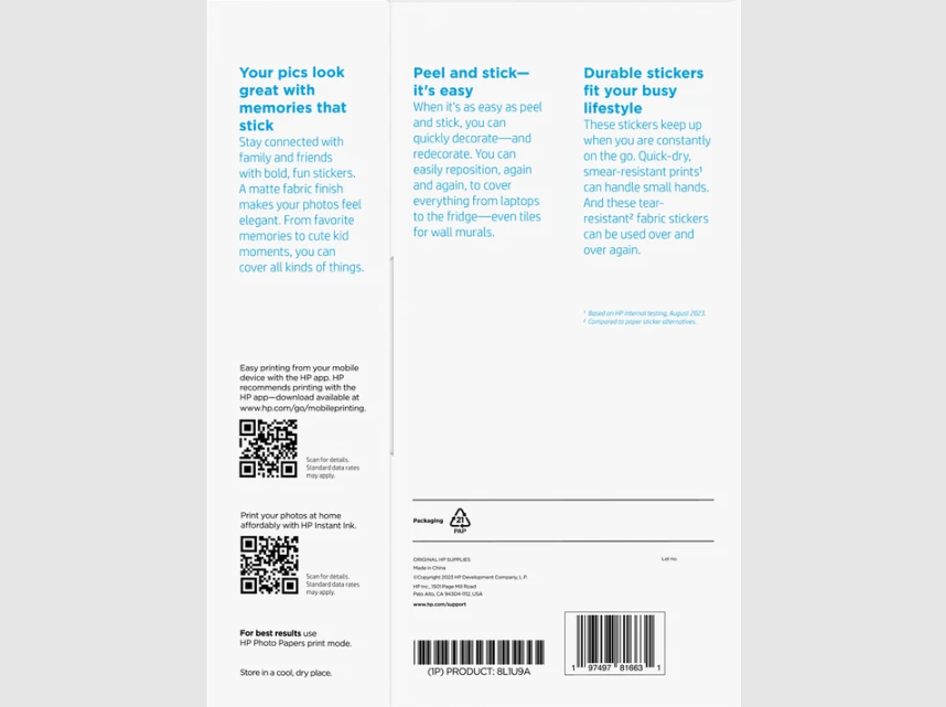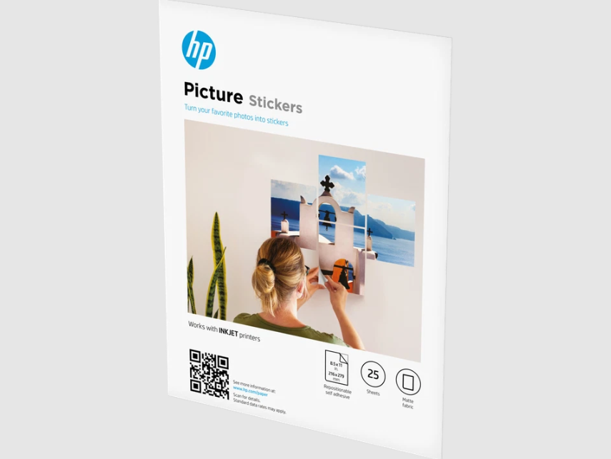 Model: HP Picture Stickers 8.5 x 11 in. (216 x 279 mm) 25 sheets