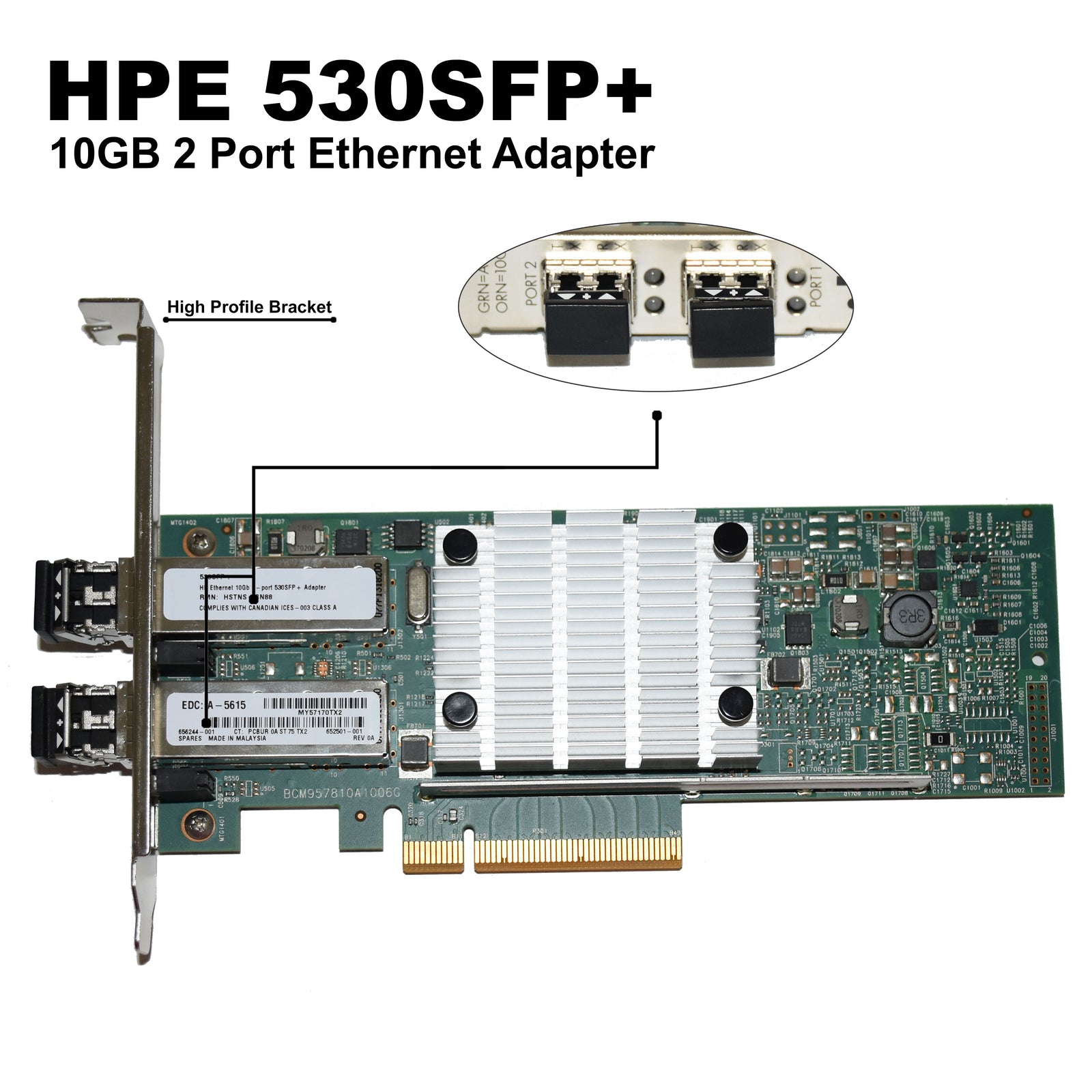 Lot of 2 HPE 530SFP+ 2-Ports 10GbE SFP+ Network Adapter with SFP+ 656244-001